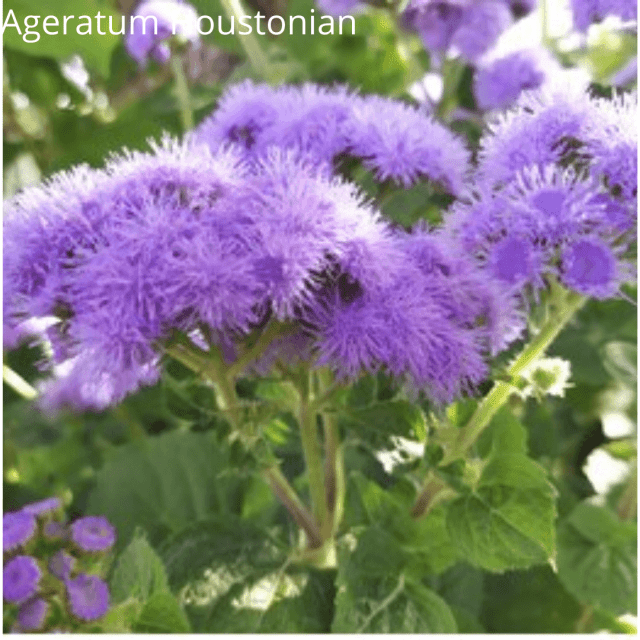 Flossflower, Pussy-foot clusters of minute lavender compositae flowers in soft brushlike heads; seasonal plant