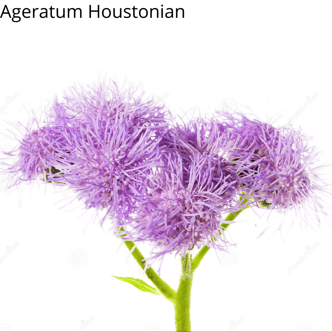 Flossflower, Pussy-foot clusters of minute lavender compositae flowers in soft brushlike heads; seasonal plant